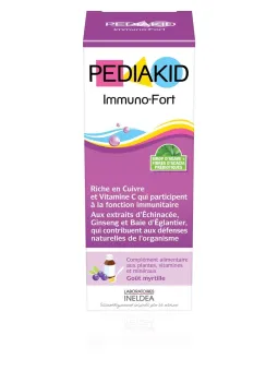 Pediakid Immuno-Fort 125 ml est un complément alimentaire sous forme de sirop aux actifs 100% d'origine naturelle et au goût myrtille qui permet de soutenir l'ensemble des défenses de l'organisme.