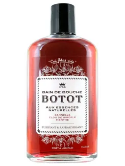 Botot Bain de Bouche Cannelle Clou de Girofle Menthe 250 ml est une préparation concentrée aux essences naturelles, destinée à l'hygiène buccale du roi Louis 15 et dont le succès traverse les siècles.