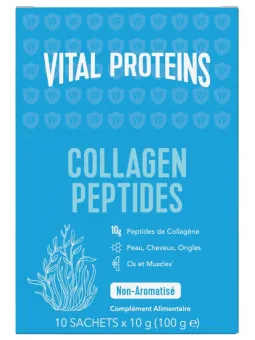 Vital Proteins Collagen Peptides 10 Sachets est un complément alimentaire en poudre, uniquement à base de collagène d'origine bovine. Ces peptides de collagène ont un goût neutre, sont adaptés pour être mélangés dans des liquides chauds ou froids et peuvent être pris à n'importe quel moment de la journée.