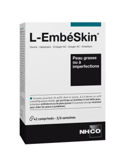 NHCO L-Embeskin Peaux Grasse à Imperfections 42 Comprimés est un complément alimentaire spécialement élaboré pour les peaux grasses à problèmes.