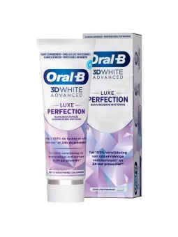 Le dentifrice Oral-B 3D White Advanced Luxe est doté de la technologie blanchissante avancée d'Oral-B. Sa mousse pénètre en profondeur et élimine activement les taches en surface dans des zones difficiles à atteindre. Le fluorure nourrit et renforce l'émail. Il protège activement contre les taches en surface pendant 24 heures avec 2 brossages par jour.