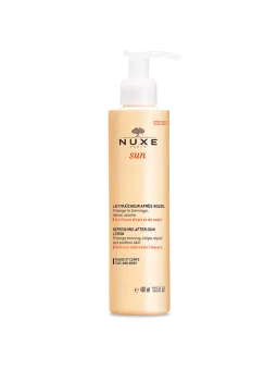 Nuxe Sun Lait Fraîcheur Après-Soleil Visage et Corps 400 ml est un soin qui répare, hydrate et prolonge le bronzage de 2 semaines (grâce à la poudre de Caroube), pour un hâle lumineux.